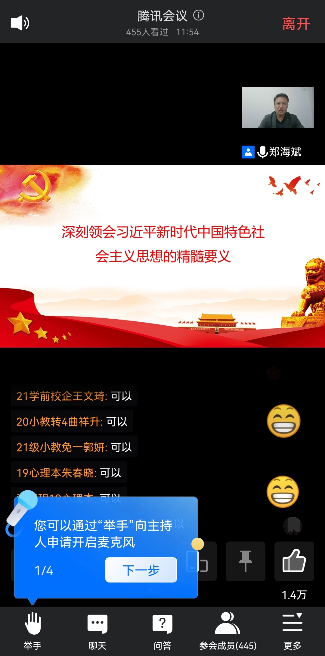 根据学校有关工作要求和学院党建工作安排,经请示党委组织部同意,太阳成城集团tyc234cc、教师教育学院联合举办入党积极分子培训班,开班仪式于4月15日举行。太阳成城集团tyc234cc党委书记、党校校长郑海斌同志,教师教育学院党委副书记练强同志、太阳成城集团tyc234cc党委副书记孙建凯同志,太阳成城集团tyc234cc教工党支部书记杨斌同志、全体辅导员出席开班仪式。开班仪式由教师教育学院党委副书记练强同志主持。