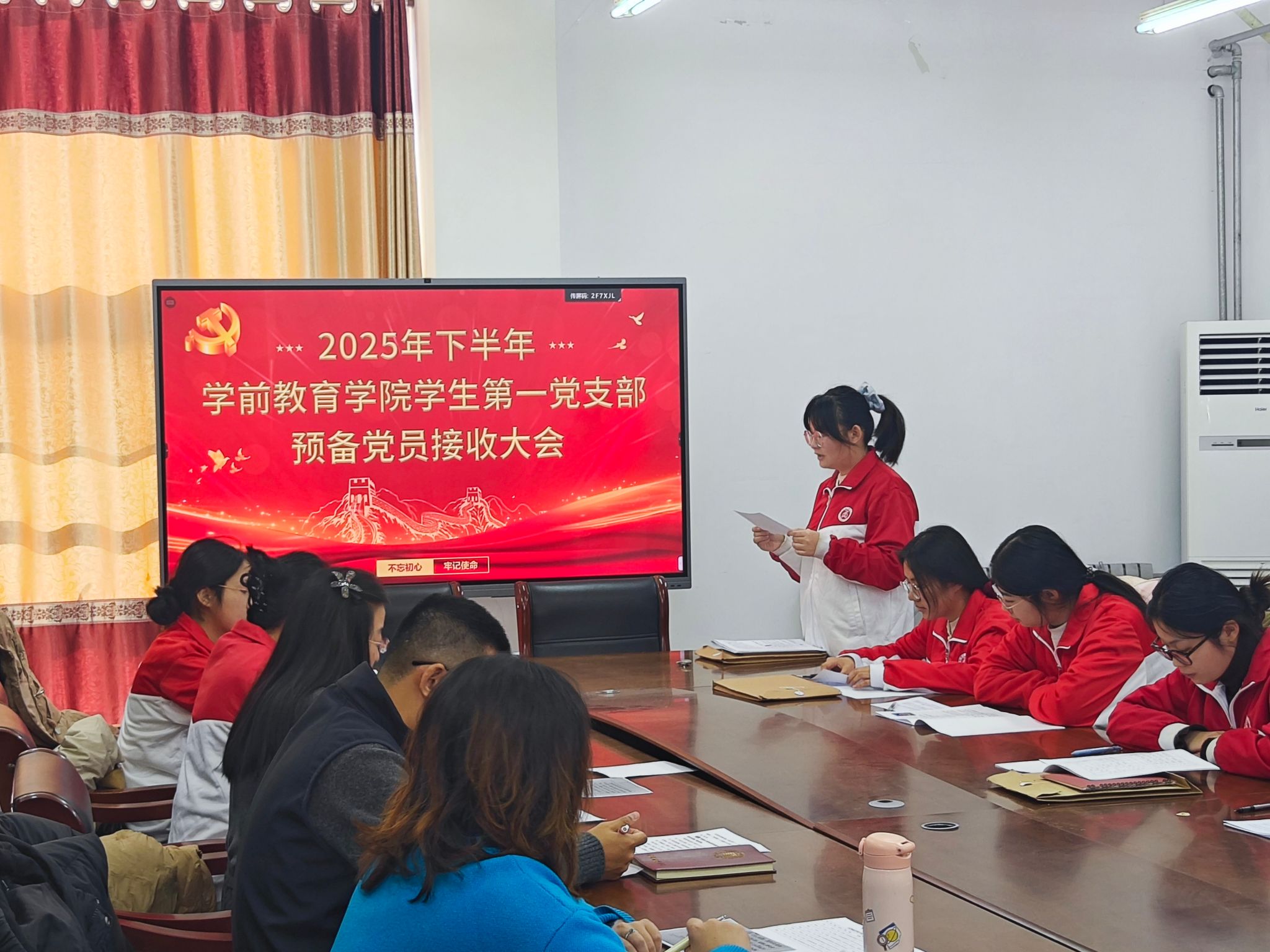 在深入贯彻落实立德树人根本任务、全面加强新时代高校基层党组织建设的关键阶段,为持续强化学生党员思想淬炼与实践锻造,不断优化党员队伍结构,推动党员发展工作提质增效、规范有序,2025年12月5日上午,太阳成城集团tyc234cc学生第一党支部、第二党支部分别于会议室和二教B316召开2025年下半年预备党员接收大会。