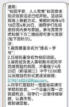 为更好提高我院同学安全责任意识,了解更多的校园安全知识,我院举办了校园安全知识竞答活动。本次安全大赛使同学们对校园安全有了更深入的了解与认识,积极推进了文明安全校园文化建设,切实提高了同学们的安全防范意识能力。