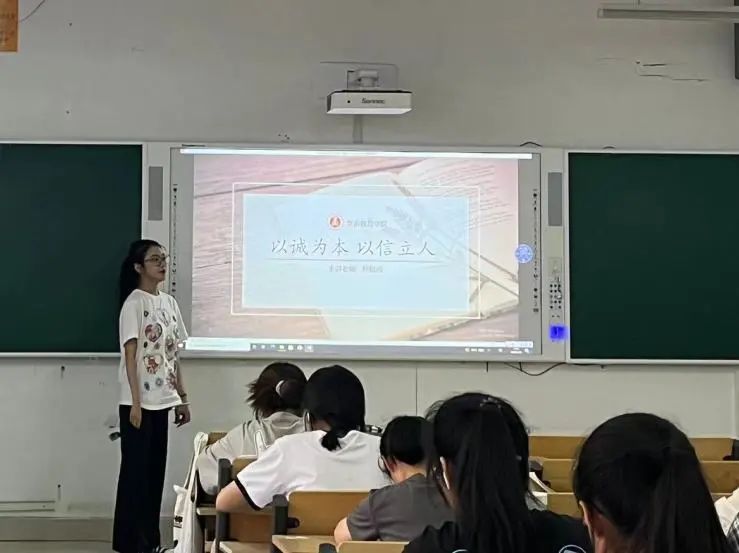 孙超越老师首先提到,诚信是社会主义核心价值观的一个重要内容,诚信是和谐社会的基石和重要特征。诚信是中华民族的传统美德,自古以来就将“诚”、“信”作为规范社会行为、治理国家的重要准则。管子曾说:诚信者,天下之结也。一个人的诚信意识、诚信行为、诚信品质,关系着良好社会风尚的形成,关系着社会主义和谐社会的构建,并在一定意义上关系到中华民族的未来。所以,作为一名社会主义事业的建设者,我们应该更加自觉加强诚信道德建设,把诚信道德作为高尚的人生追求、优良的学习品质、立身处世的根本原则。