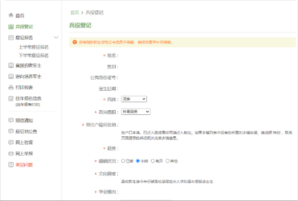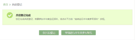 登录成功后进行兵役登记,填写相关个人信息,完成登记点击继续进行本年度参军报名。