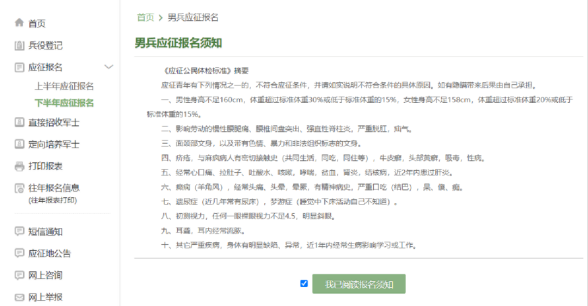 选择报名阶段确定后,会弹出男兵应征报名须知,请仔细阅读对照自身条件是否符合。