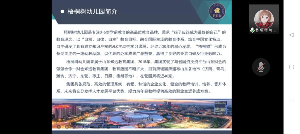 宣讲会上,梧桐树幼儿园人资中心隋老师为大家就该园教育理念、教育目标、教育体系展开详细介绍,并为大家介绍了该园独特鲜明的办园特色-融合国际先进教育模式、理念、策略的课程体系,通过生动的课程示例与教师技能培训展示,展现出该园独特的办园特色。