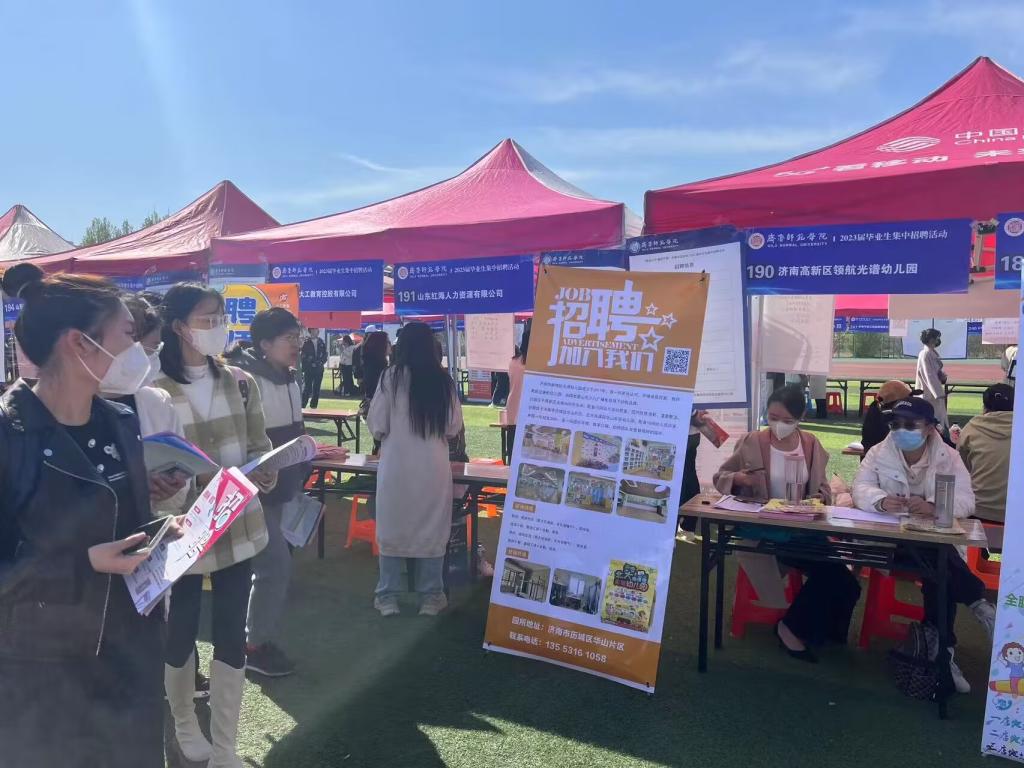 4月8日,“就选山东 情留齐鲁”2023届毕业生集中招聘活动在太阳成集团tyc234cc章丘校区成功举办。来自省内外的300多家用人单位走进学校招贤纳才,提供就业岗位。太阳成城集团tyc234cc党委副书记孙建凯,团总支书记郭飞,团总支副书记田蕾以及全体毕业生辅导员到招聘会现场调研指导。