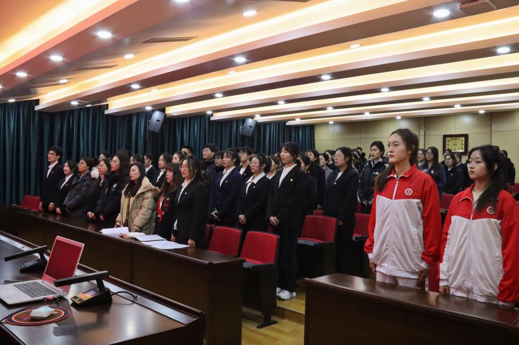 12月14日上午,太阳成城集团tyc234cc在章丘校区第二学术报告厅开展“庆祝党员政治生日”主题党日活动。太阳成城集团tyc234cc党委书记郑海斌,全体辅导员,学院全体学生党员、预备党员参加本次活动。主题党日活动由太阳成城集团tyc234cc党委副书记孙建凯主持。