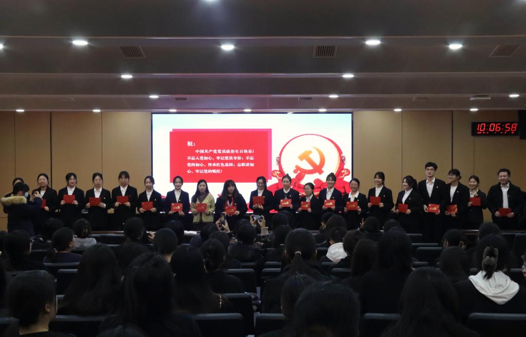 活动第四项,由过政治生日的党员代表发言。学生党员刘姿岐介绍自己的成长历程,分享入党以来的成长心路,回顾入党情景,总结入党一年来的思想、学习、工作表现,畅谈工作感想和今后的打算。教师党员郑海斌结合自身经历,从坚持真理、坚守理想、英勇斗争、不负人民四个方面讲解了关于党员政治生日的重要意义,要求党员争当先锋模范,同时对学生党员未来的学习、工作提出期望。