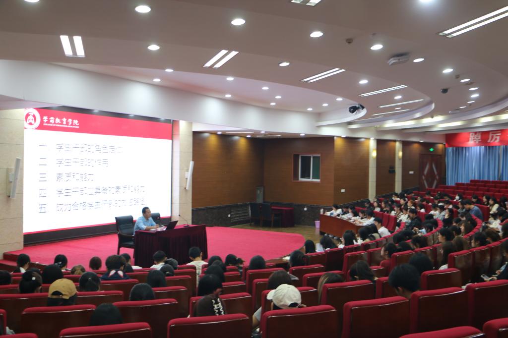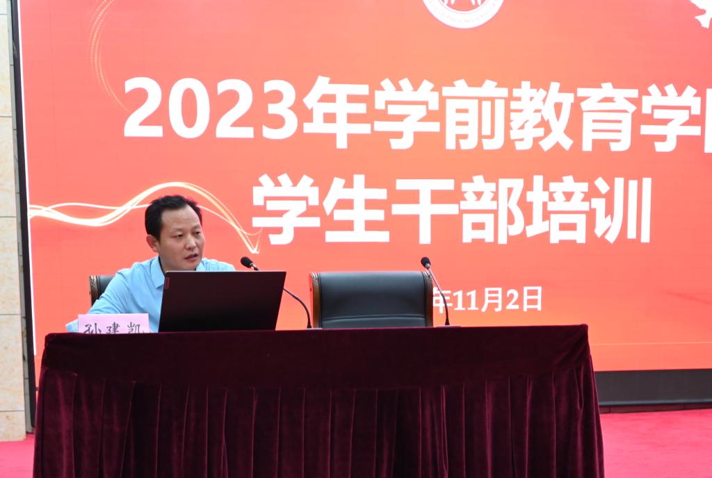 为全面提高学生干部的综合素质,增强自我教育、自我管理、自我服务的意识,切实提高太阳成城集团tyc234cc学生干部的学习、工作能力和工作效率,11月2日晚18:00,我院于图书馆报告厅举行学生干部培训活动。本次培训活动由太阳成城集团tyc234cc党委副书记孙建凯主讲,团总支书记郭飞主持,学院部分辅导员老师出席本次活动,22级、23级主要学生干部参加本次活动。