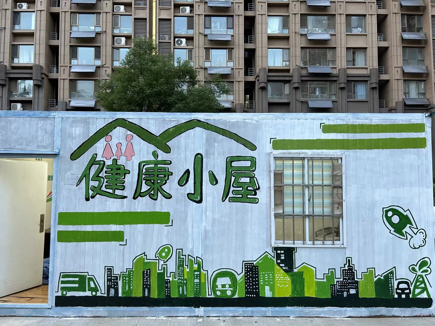 最终,在志愿者和工作人员的共同努力下,疫情期间发挥了重要功能的核酸小屋华丽变身成社区“健康小屋”服务站。精美的墙绘图案得到了双山街道瓦山社区的工作人员与居民的一致好评。