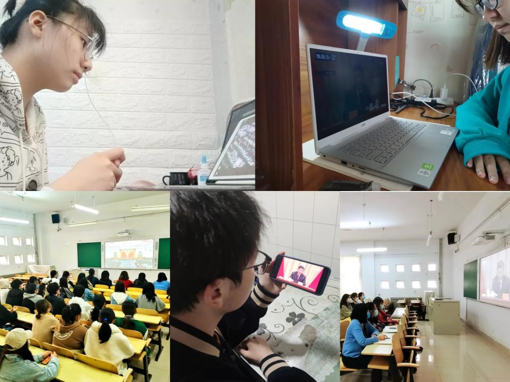 我院组织全体辅导员老师及学生代表共同观看直播,交流心得。各班级以宿舍为单位通过新华社客户端、学习强国APP等权威报刊观看,居家学习的同学也准时观看直播,切身实际的学习习近平总书记重要讲话,领会讲话精神实质。