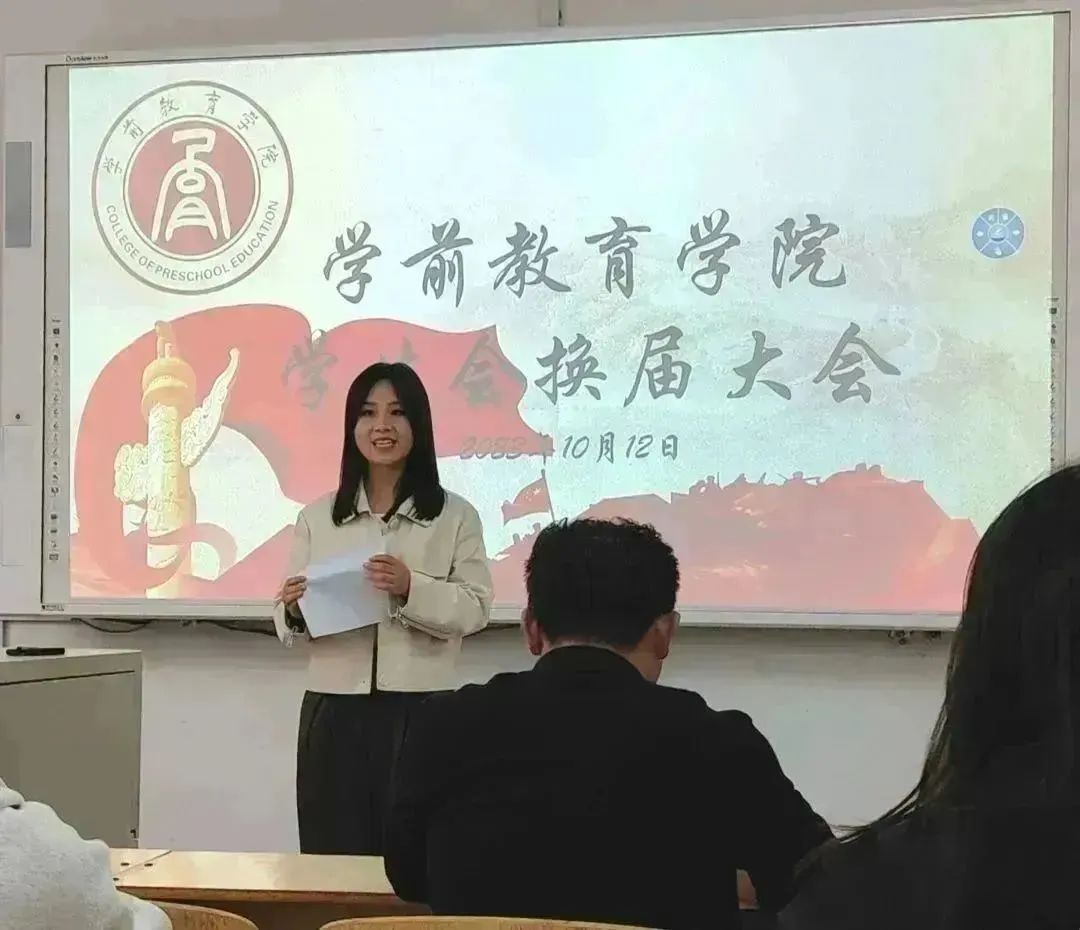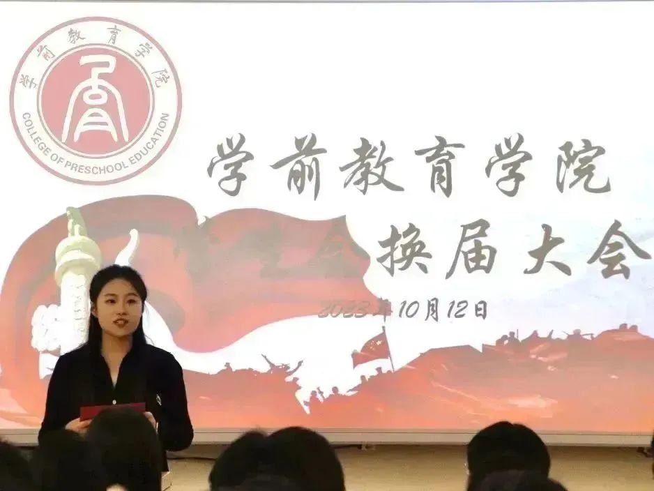 大会第四项,第三届学生会主席团成员代表王梓洁发言。她在发言中表达了对历届学生会成员的钦佩,提到新一届的学生会将接续前辈精神,秉承“为学生服务”的宗旨,立足新起点、迈向新征程。在今后的工作生活中,学生会将继续带领新成员坚持服务同学、锻炼自我的理念,不负老师同学的厚望。