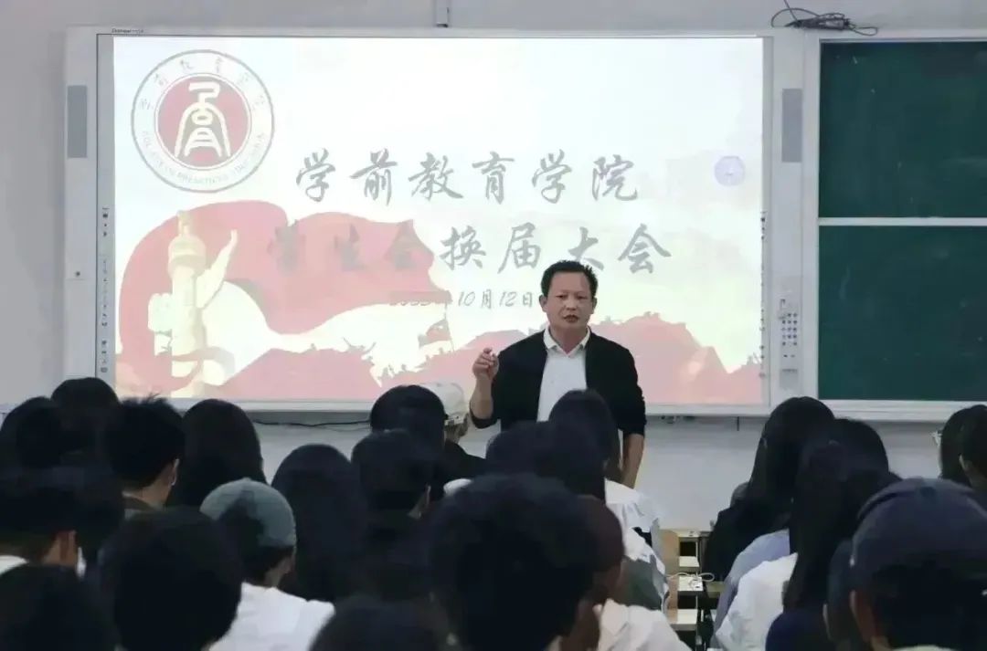 大会第六项,孙建凯发表讲话。孙建凯首先对历届学生会成员的工作表示充分肯定,祝愿大家今后学习生活越来越好,同时对提出了“扶上马,送一程”的口号,鼓励他们积极对学生会新成员进行教引指导。其次,他表达了对新成员的热烈欢迎,并提醒广大学生会成员要正确认识学生会工作,为全体同学做好服务、肩负责任、勇于担当,平衡好学习与工作之间的关系。