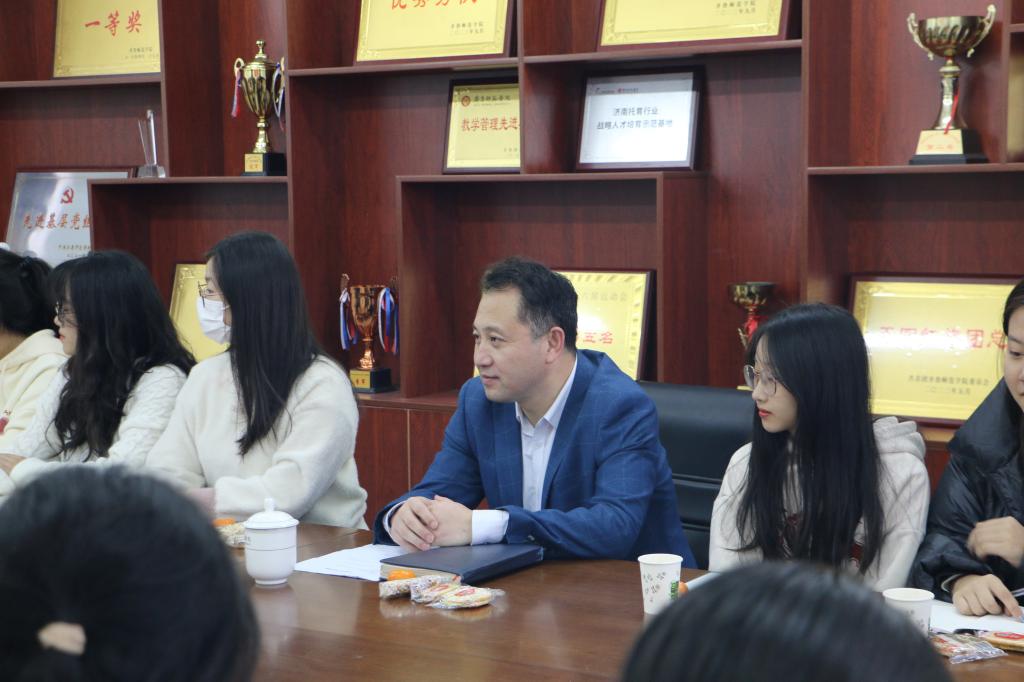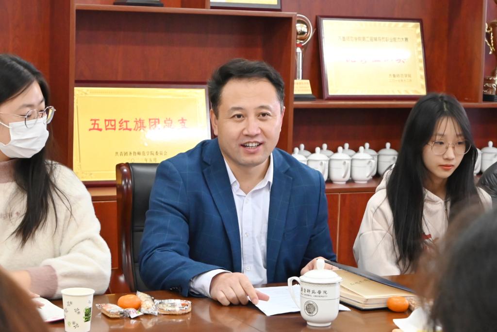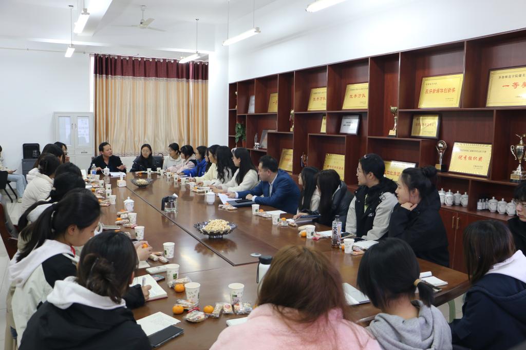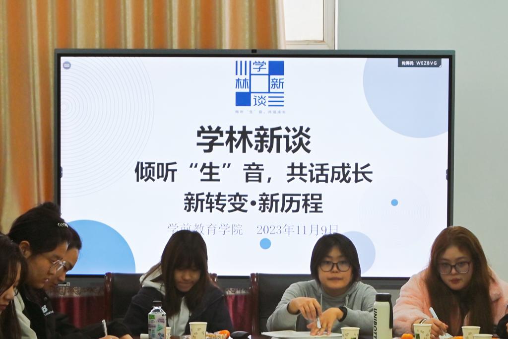 2023年11月9日下午14:30,太阳成城集团tyc234cc在二教三楼会议室召开“倾听‘生’音,共话成长”学林新谈系列活动之“新转变·新历程”活动。会议由党委书记郑海斌、党委副书记孙建凯主持,太阳成城集团tyc234cc副院长孙岩、教师王玉华受邀参加。