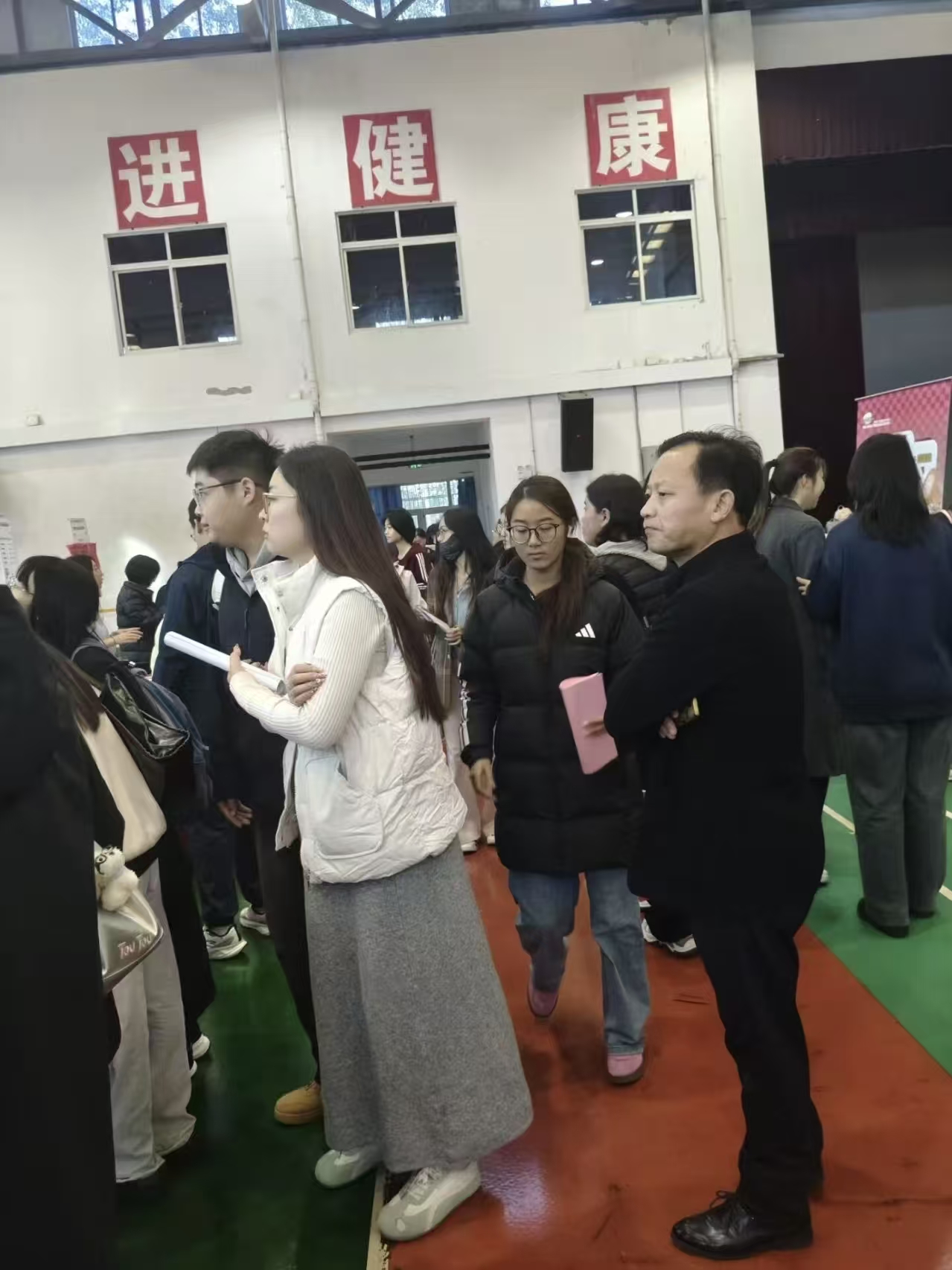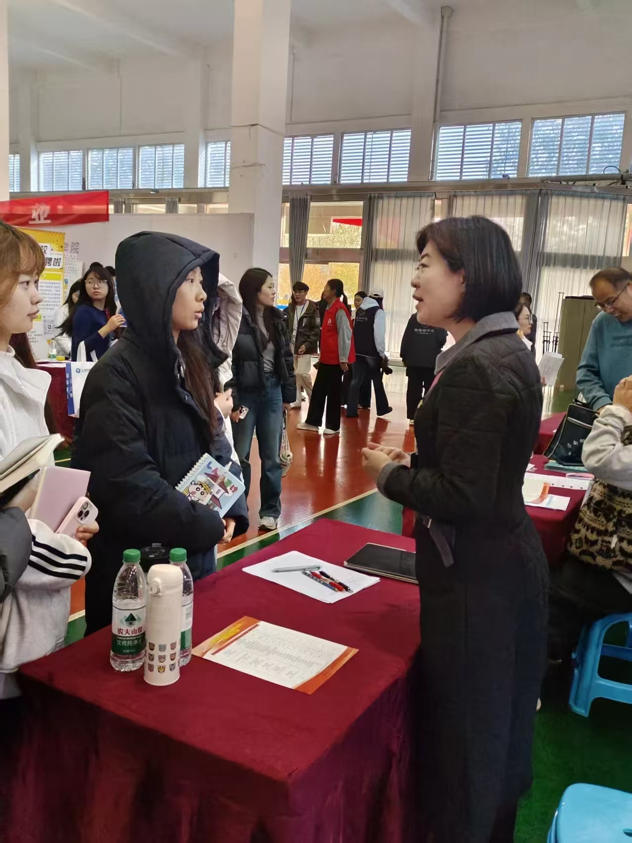 毕业班辅导员刘肖君、林芳老师也全程参与,深入招聘会一线。她们密切关注学生的应聘状态,及时为学生提供面试技巧指导、心理疏导以及就业政策咨询,帮助学生缓解紧张情绪,提升应聘成功率。两位辅导员还与部分用人单位进行了对接,进一步了解了市场对学前教育人才的具体需求,为后续更有针对性地开展就业指导与服务积累了宝贵的一手资料。