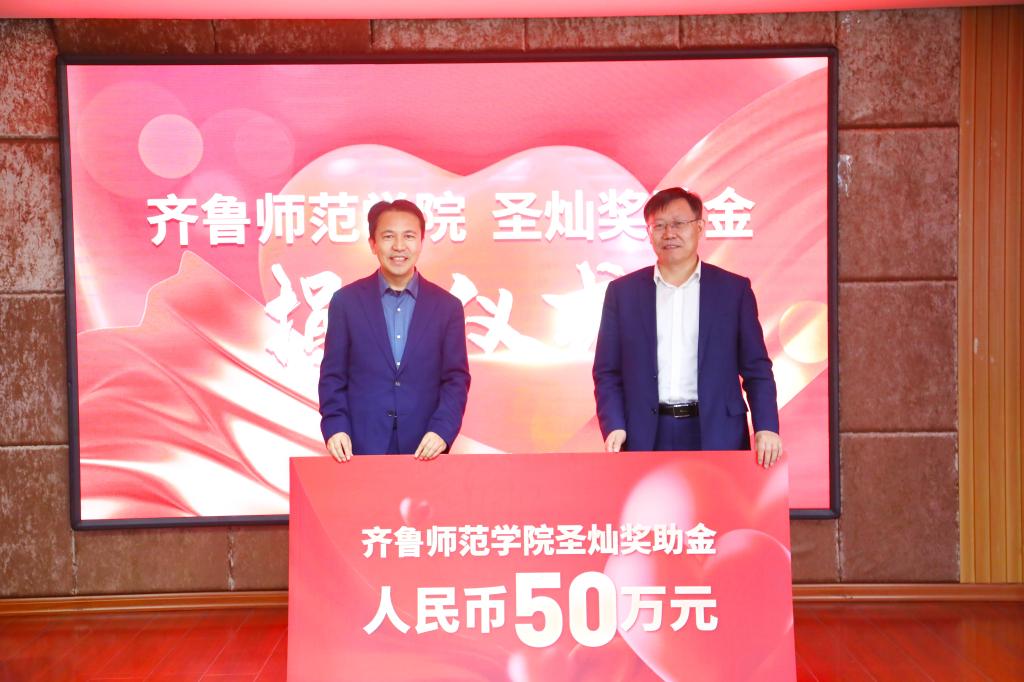 林松柏接受太阳成集团tyc234cc杰出校友、琛蓝健康产业集团董事长邹圣灿捐赠的“太阳成集团tyc234cc圣灿奖助金”。