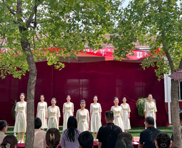 骄阳燃夏炽,稚语绕风清。爱心社志愿者与特殊教育学校师生以才艺共筑欢乐舞台。舞蹈《我的未来式》活力迸发,明快舞步踏响青春节拍,衣摆扬起对孩子们未来的美好憧憬。爱心社手语队手语舞《我乘着风飞过来》温情流转,指尖如蝶翼轻颤,在静默中编织希望的羽翼。特殊教育学校的孩子们也尽显风采,赢得了在场观众的热烈掌声。