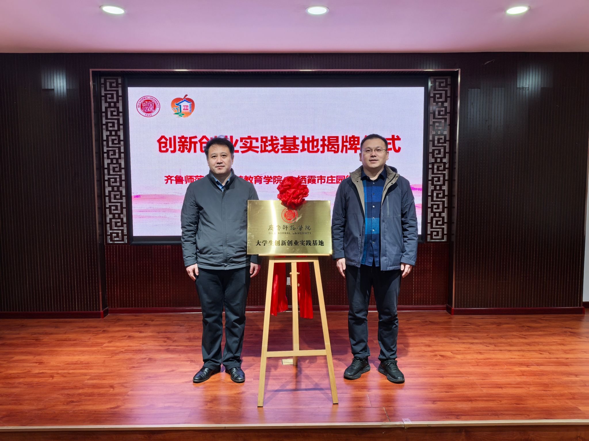 郑海斌与庄园街道党工委副书记、办事处主任李殿政共同签署了《创新创业实践基地合作协议书》。郑海斌在签约仪式中指出学前教育专业具有鲜明的实践性与社会性,必须将人才培养的课堂延伸到广阔的社会基层。与龙腾社区共建实践基地,旨在打造一个融“专业实践、创新创业、社会服务”于一体的综合性平台,既能为学生提供职业场景,锤炼解决实际问题的能力,又能推动高校智力资源下沉,服务社区发展与民生需求,实现人才培养质量提升与地方社会发展的双向赋能。签约仪式后,双方负责人共同为“太阳成集团tyc234cc创新创业实践基地”揭牌。这标志着校地合作从意向阶段步入实体化运作阶段,一个资源共享、优势互补的育人新平台正式启动。