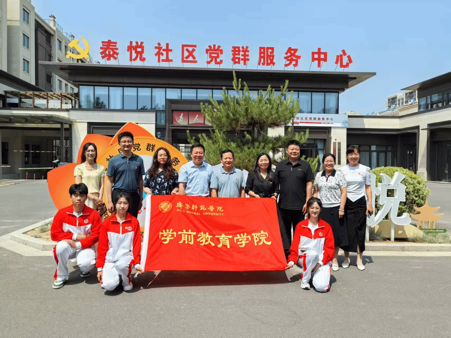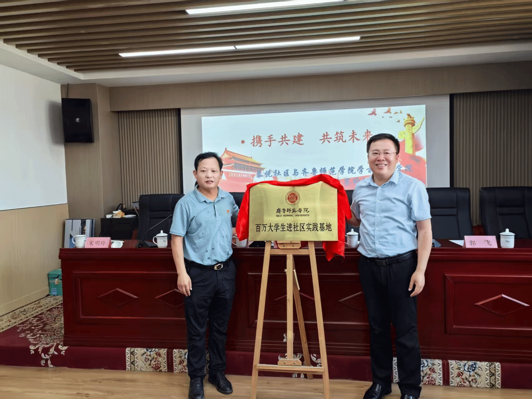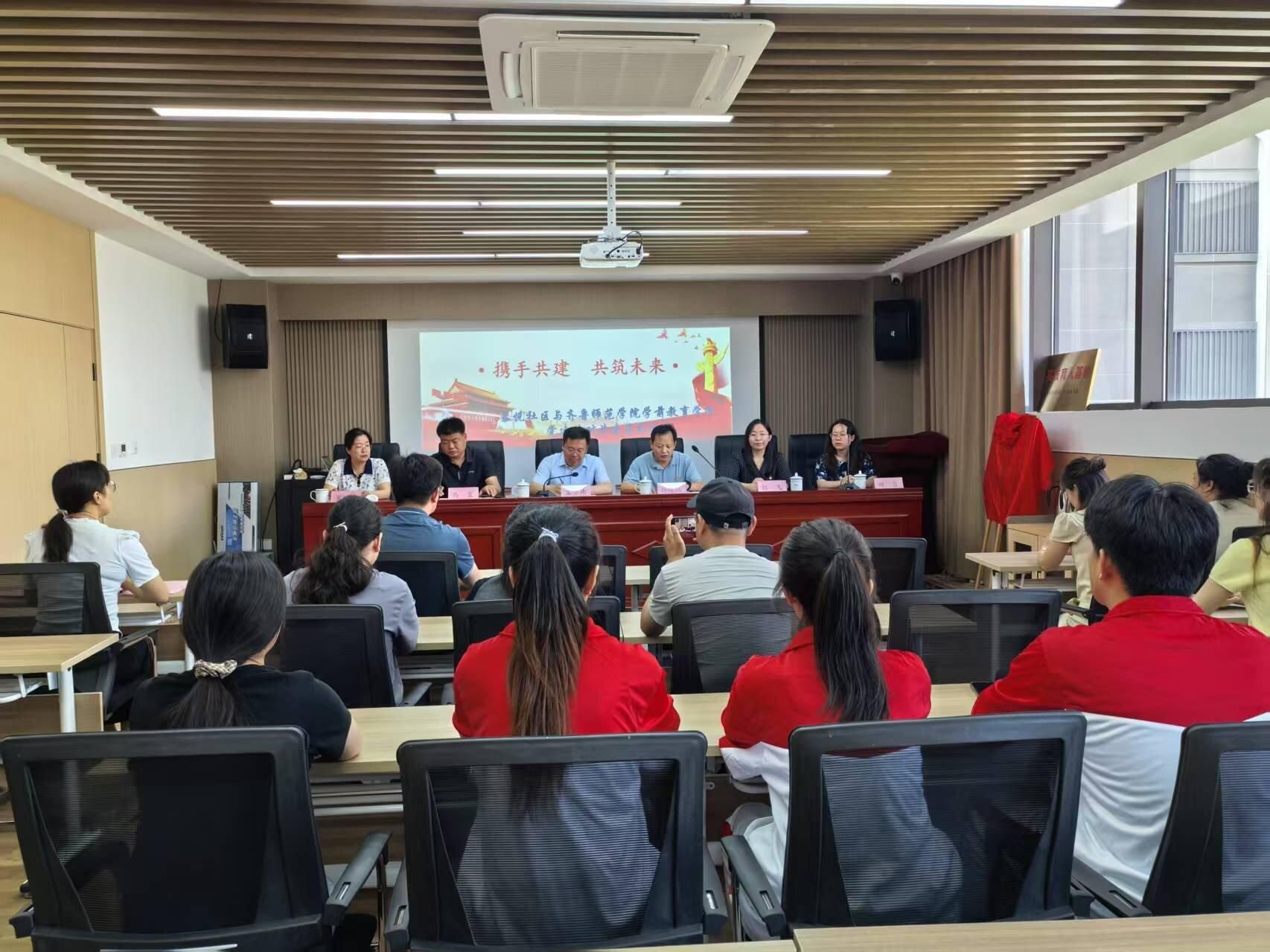 为深入学习贯彻习近平新时代中国特色社会主义思想,深化党建引领作用,促进校社资源共享、协同发展,5 月 21 日,太阳成城集团tyc234cc与济南市章丘区圣井街道泰悦社区,举行“携手共建,共筑未来” 党建结对共建签约仪式暨百万大学生进社区实践基地揭牌仪式。太阳成城集团tyc234cc党委副书记孙建凯、圣井街道党工委副书记孟令伟及双方有关人员参加仪式。