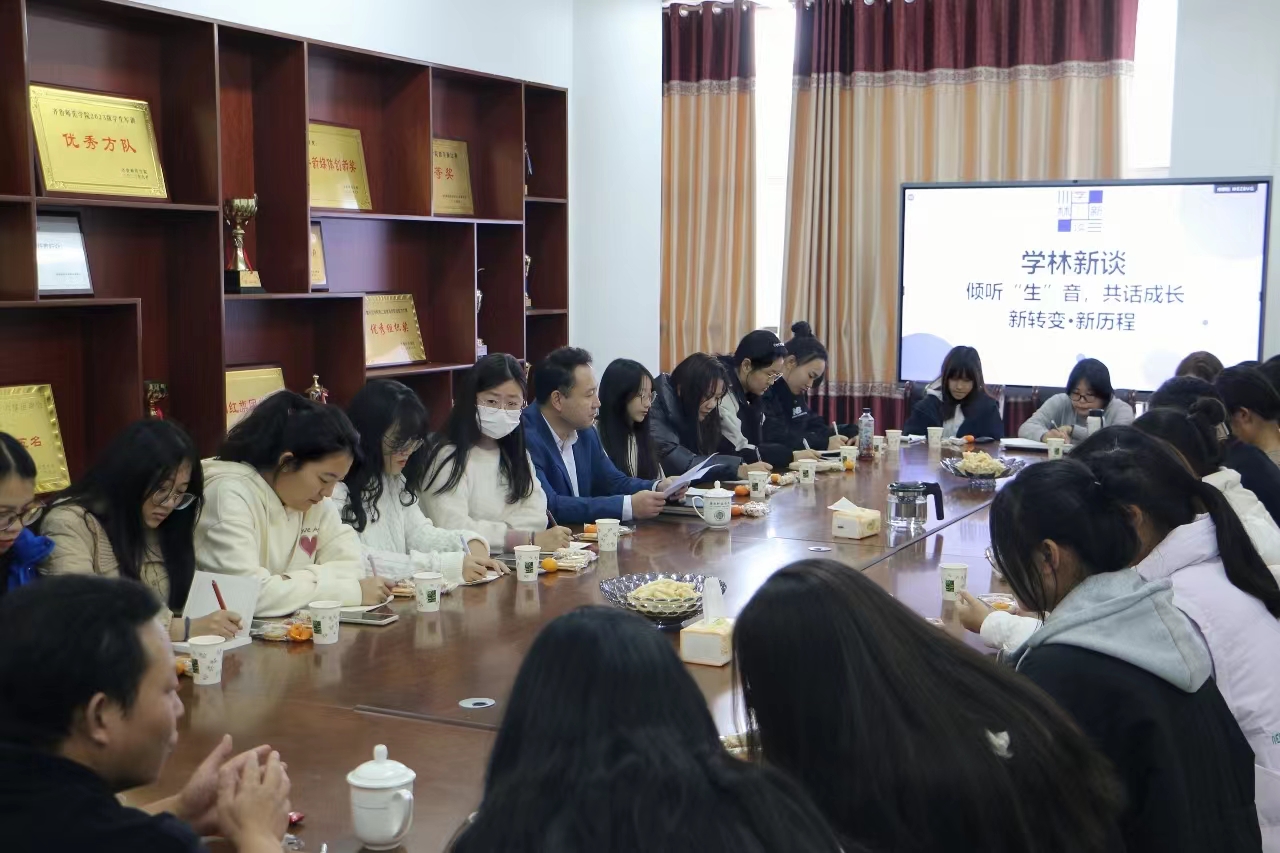 2023年11月9日,太阳成城集团tyc234cc“倾听‘生’音,共话成长”学林新谈系列活动在二教三楼会议室召开。太阳成城集团tyc234cc党委书记郑海斌、副院长孙岩、教师王玉华受邀为学生答疑解惑,23级各班学生代表参加。活动由党委副书记孙建凯主持。