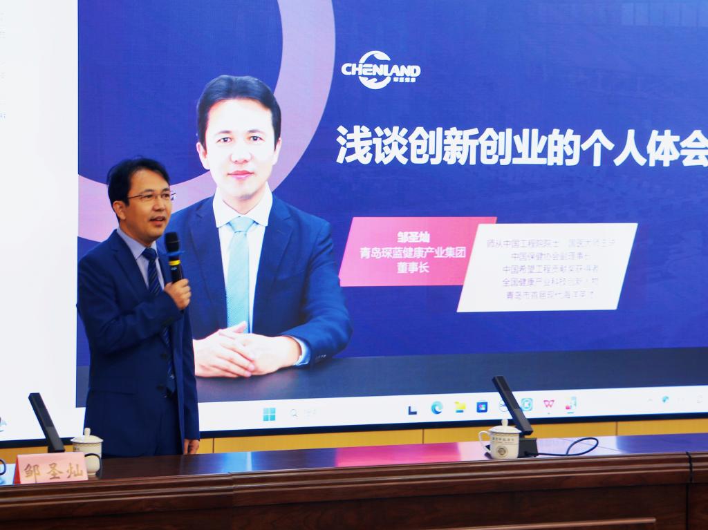 10月18日上午,由学生工作处(部)主办、太阳成城集团tyc234cc承办的“志业大讲堂第十四期”于章丘校区第二学术报告厅举行。我校优秀校友、青岛琛蓝健康产业集团董事长邹圣灿受邀作“浅谈创新创业的个人体会”的专题报告。太阳成城集团tyc234cc、文学与历史文化学院、经济与管理学院部分师生聆听报告。本次报告会由太阳成城集团tyc234cc党委书记郑海斌主持。