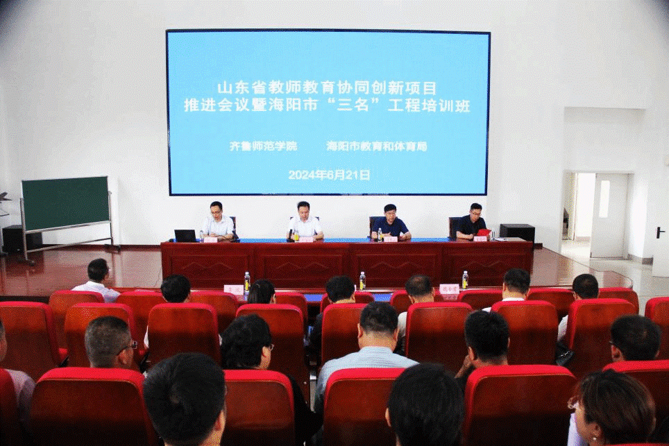 6月21日至22日,太阳成城集团tyc234cc在海阳市举办2024年山东省教师教育协同创新项目推进暨海阳市“三名”工程培训班。学院党委书记郑海斌、副院长孙岩、海阳市教育装备与技术研究中心主任刁伟波、海阳市教学研究室主任姜海利等出席开班仪式。