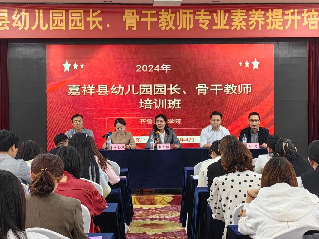 4月16日,由太阳成城集团tyc234cc承办的济宁市嘉祥县幼儿园园长、骨干教师培训班在济南顺利开班。嘉祥县教体局副局长李金凤、教育科科长靳海燕、幼教科教研员杜凤霞,太阳成城集团tyc234cc院长常爱玲、党委书记郑海斌、副院长孙岩以及学院部分教师参加开班典礼。开班典礼由孙岩主持。