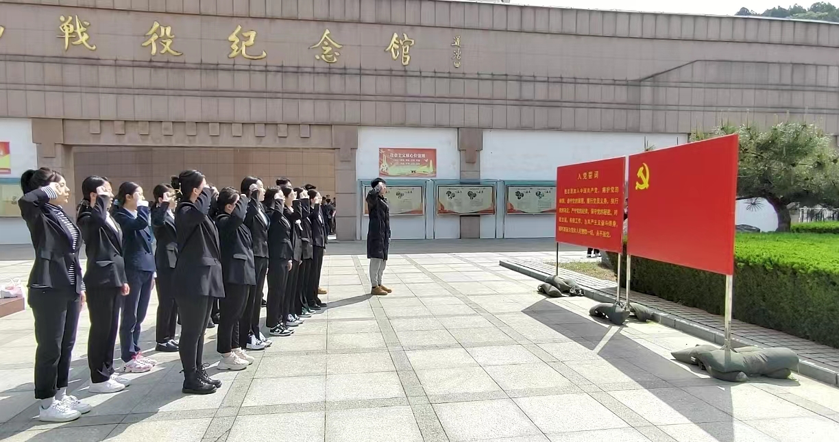 在济南战役纪念馆前,学生党员面对鲜红的党旗,重温入党誓词。重温初心、感悟初心、践行初心,才能把党的根本宗旨和奋斗目标内化于心、外化于行。通过此次主题党日活动,全体党员进一步坚定了理想信念,锤炼了党性,增强了党员意识。