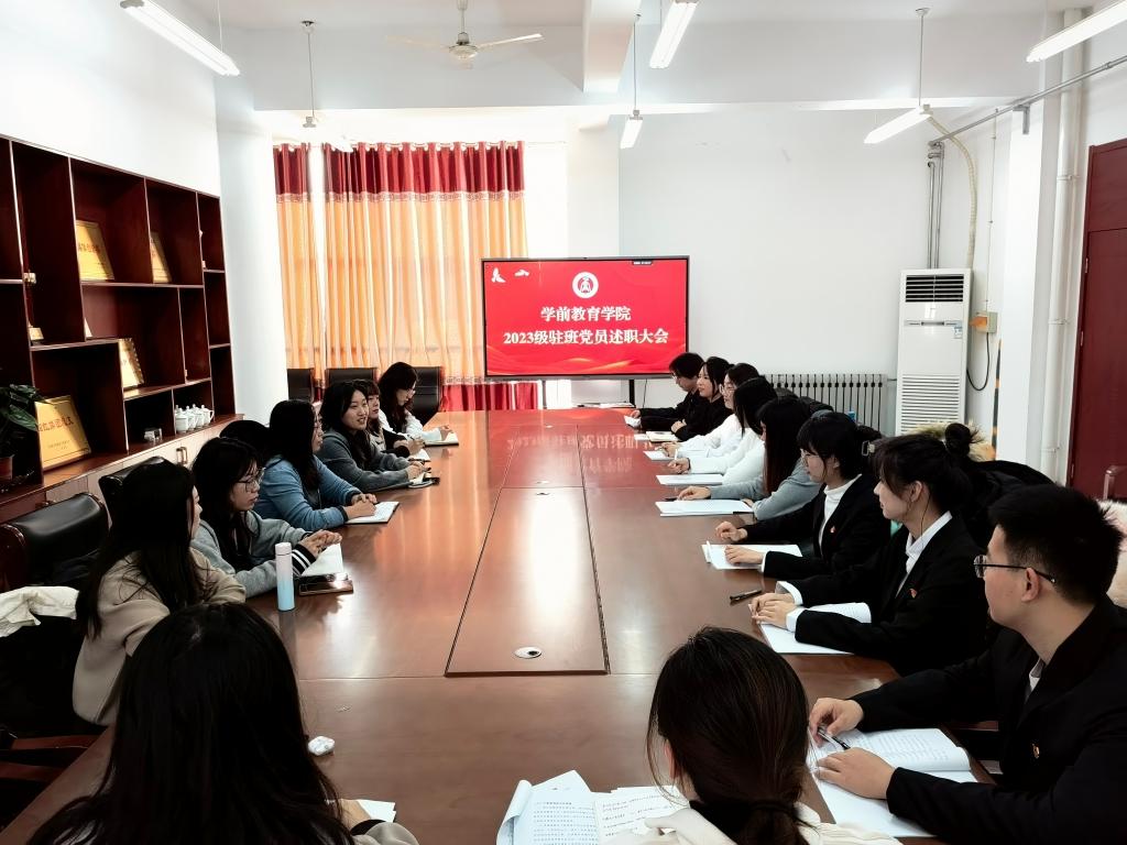 2023级学前教育转段本科1、2班驻班党员高威以“三心三线”追光铸魂育人为题进行述职。他围绕坚守初心,织好学生思想政治底线;坚定恒心,做好学生全面发展主线;坚持暖心,筑好学生健康成长防线三个方面汇报履职以来的班级情况和个人工作。
