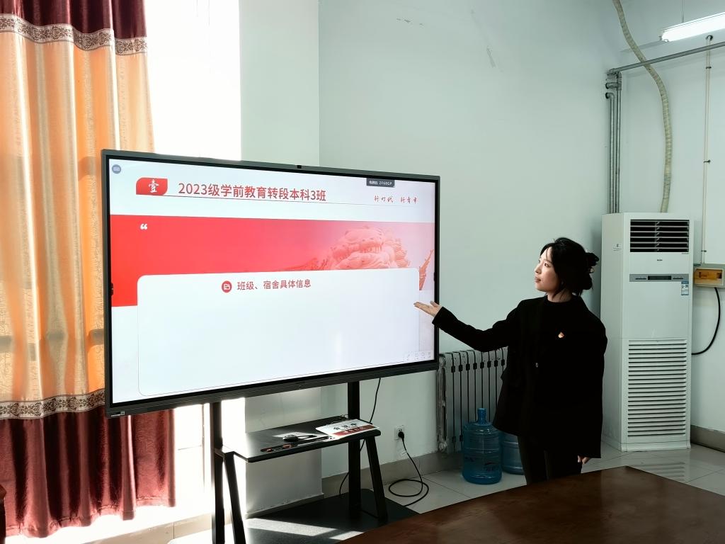 2023级学前教育普通专科班驻班党员耿子颖为了新生明确大学学习的目标和理想,加强新生对党团的思想建设与组织发展,开展新生入党启蒙教育;定期组织召开班会、学生座谈会,结合自身帮助新生养成良好的行为习惯;深入宿舍,和新生谈心谈话,关心新生校园生活,为他们解答疑惑。