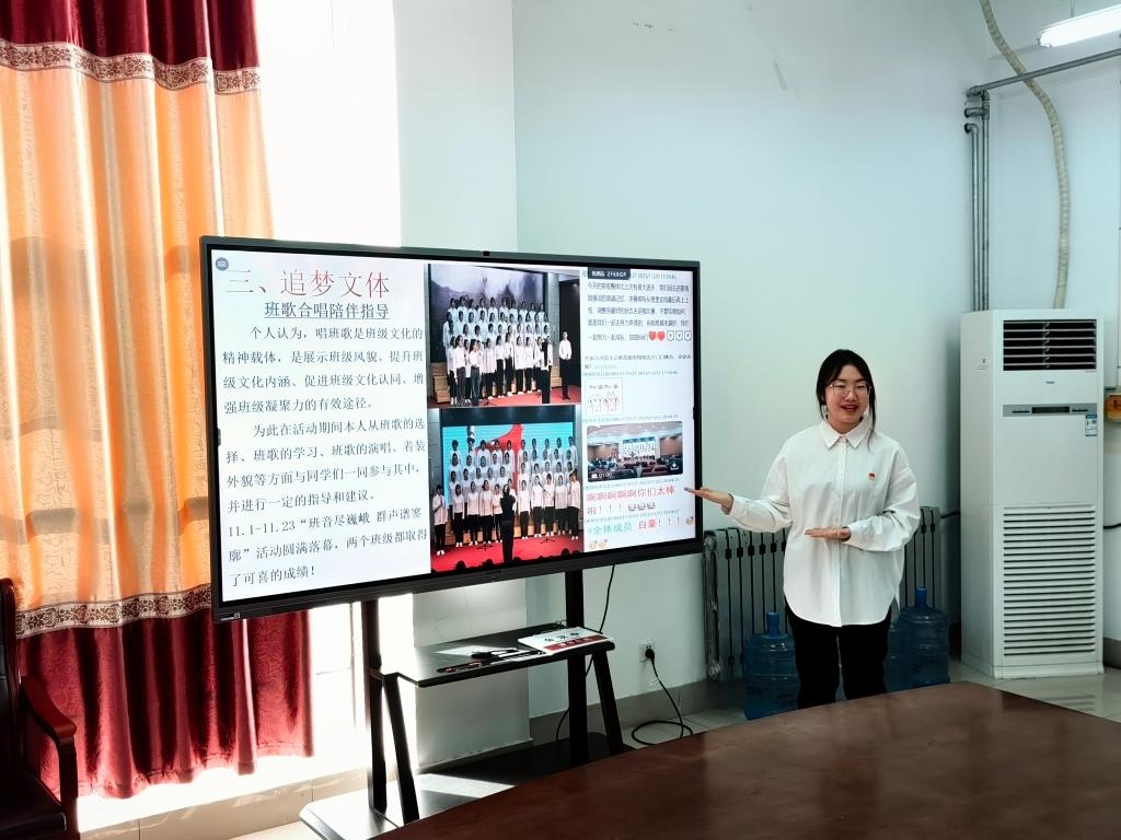 2023级学前教育转段专科1、2班驻班党员李佳茹从思想指引、学习督促、追梦问题、倾听“新”声“宿”说美好四个方面进行讲述,并表示在和新生沟通交流的过程中教学相长、互相提高。
