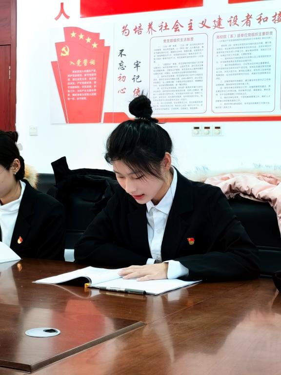 2023级学前教育校企合作专科班驻班党员王敬涵在担任驻班党员期间,提前熟记所驻班级新生姓名,在迎新工作中引导新生顺利报到;在新生班级建设方面,她定期召开班会,认真了解新生学习和生活情况,加强理想信念教育。在半学期的驻班过程中,与新生产生良性互动,发挥模范作用。